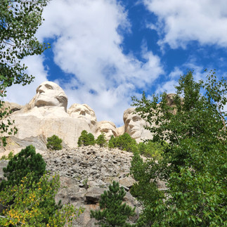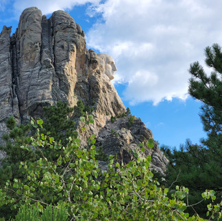 Woke up to a glorious cool, sunny morning (50 degrees), had breakfast, and drove over to Mt. Rushmore the back way via Horsethief Lake. There were just a few clouds to make the shadows on the faces ever-changing. Morning is undoubtedly the best time to visit Mount Rushmore. We walked the President’s Trail, which is now reopened following the recent extensive renovations to the facilities at the memorial. The trail is definitely worth it and provides close up views of the carving and surroundings and ends up at the sculptor’s studio.